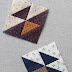 Now take the BOTTOM triangle and flip it up so that the blue fabrics KISS. Moowha! The two sewn triangles are now together!